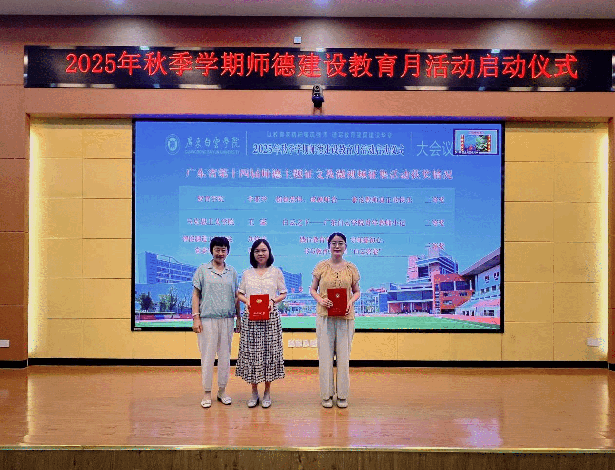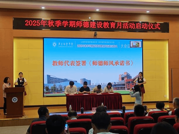 仪式上,副校长纪秋颖为在广东省第十四届师德主题征文及微视频征集活动中获二等奖的李亚玲(教育学院)、王蕊(马克思主义学院)老师颁奖。新教职工代表在两校区会场现场庄重签署《师德师风承诺书》。