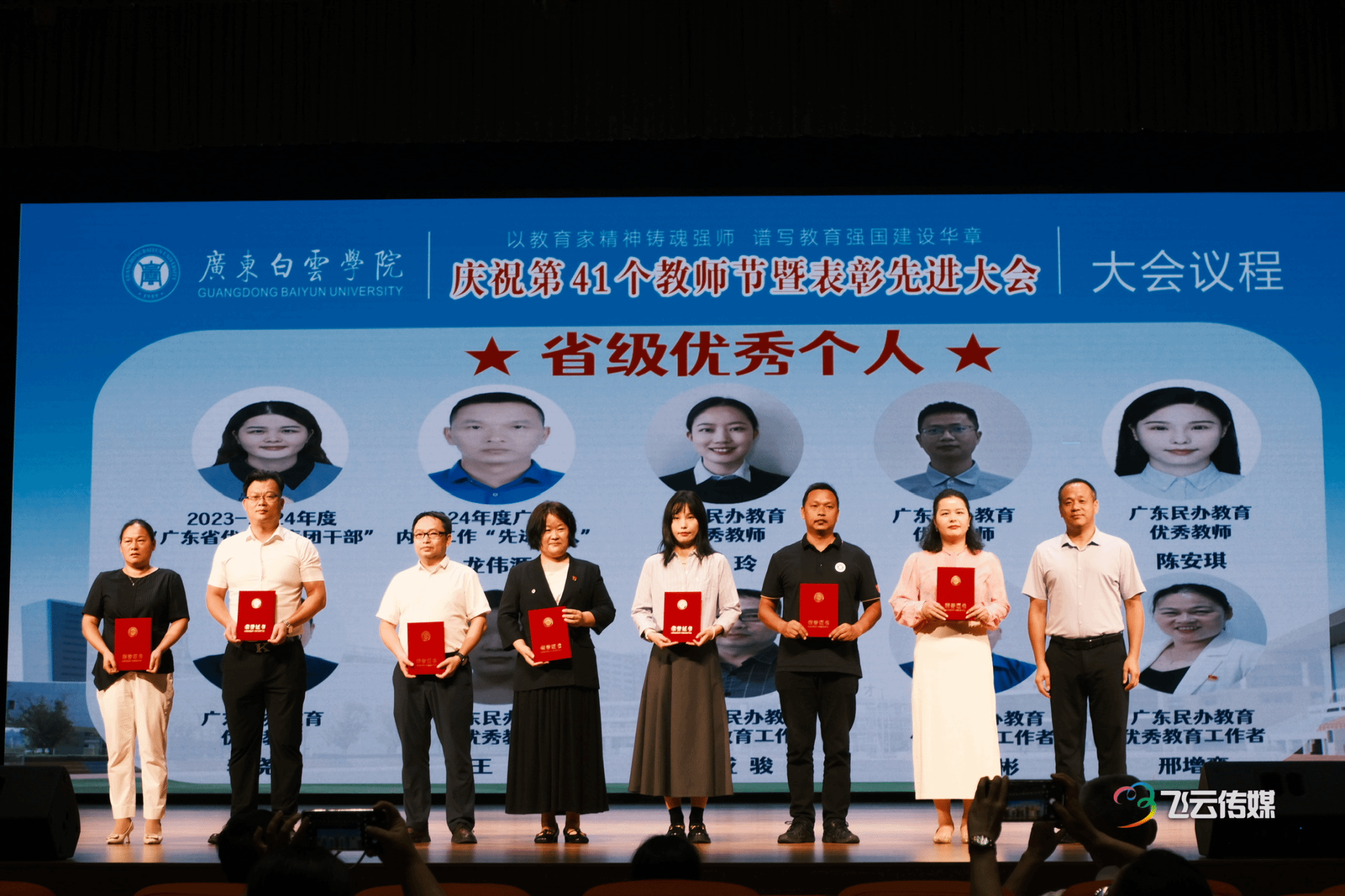 秋韵荡漾,师风拂面。9月10日下午,学校在北校区白云大厅、西校区小礼堂通过视频连线同步举行庆祝第41个教师节暨表彰先进大会。大会旨在表彰过去一年在教育教学、科研管理领域践行教育家精神的先进集体与个人,凝聚全校教职工力量,为教育强国建设贡献白云力量。