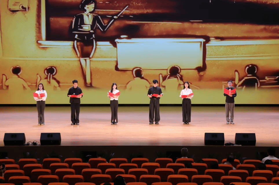 伴随着深情的配乐,传媒学院带来诗歌朗诵《因为是老师》。朗诵者以细腻的情感、鲜活的表达,讲述教师扎根讲台、以教育家精神潜心育人的点滴故事,诠释师者“传道授业解惑”的初心与“铸魂强师”的担当,温情的表演迅速点燃会场氛围,为大会拉开帷幕。